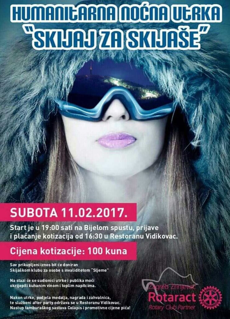 Bijeli spust na Sljemenu bit će domaćin humanitarnoj akciji Skijaj za skijaše iza čije organizacije stoji Rotaract klub Zrinjevac Zagreb. Cilj akcije je prikupljanje sredstava za pomoć Skijaškom klubu za osobe s invaliditetom- Sljeme.
