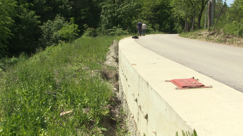 Klizište je na samom zavoju, cesta je osigurana kamenim i betonskim blokovima, pa ne propada, ali nedostaje ograda koja je bila predviđena u gradnji…