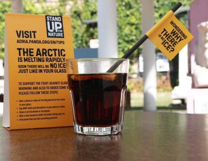 Poruka je to WWF-a, jedne od najvećih i najuglednijih svjetskih nezavisnih organizacija za zaštitu prirode uz koju su gostima kafića podijelili i nekoliko jednostavnih savjeta kako svatko od nas može svakodnevno utjecati na smanjenje klimatskih promjena.