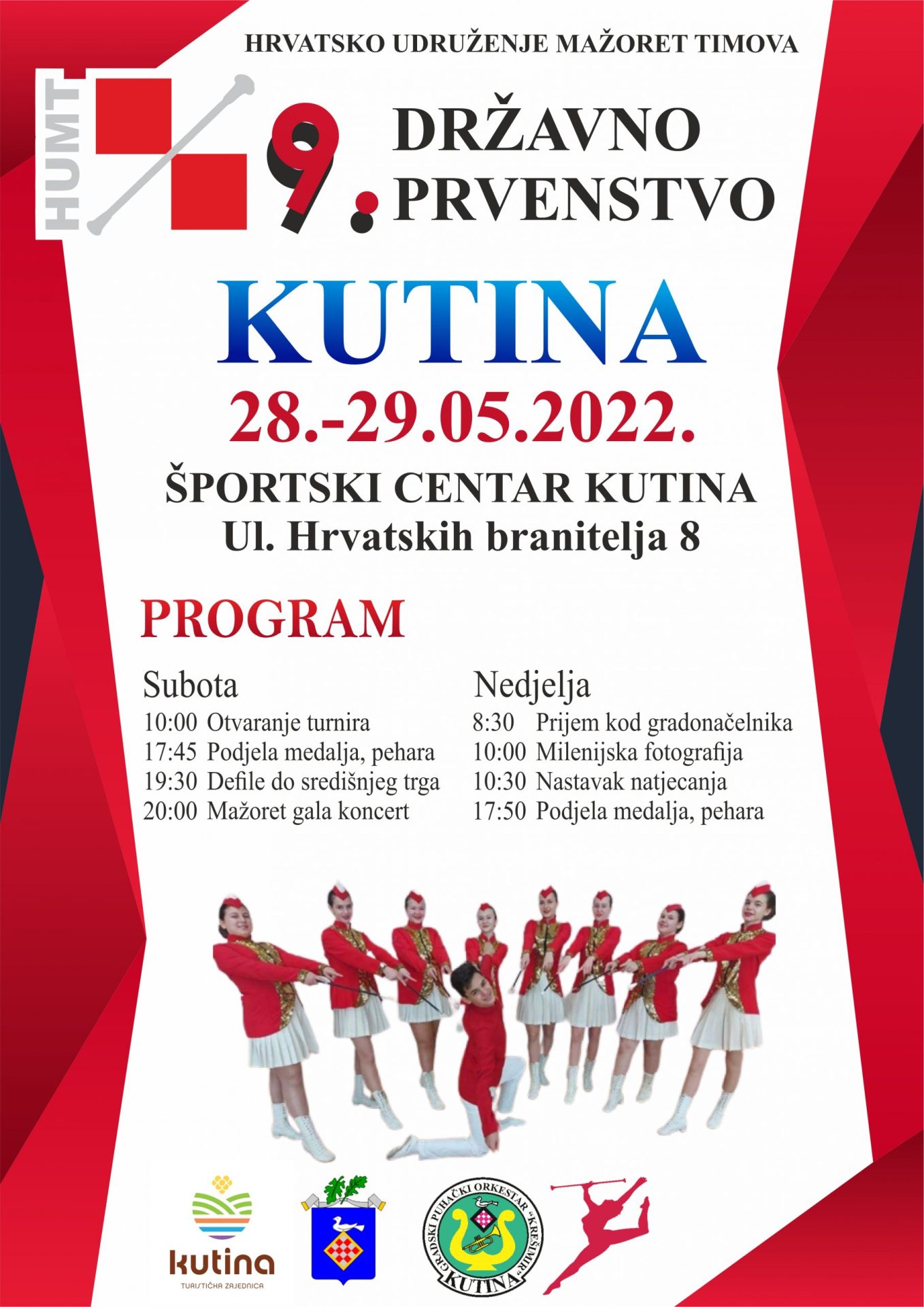 Mažoretkinje grada Kutine bit će domaćini Državnog prvenstva Hrvatskog udruženja mažoret timova koje će se održati u subotu i nedjelju, 28. i 29. svibnja 2022. godine u Sportskom centru Kutina.