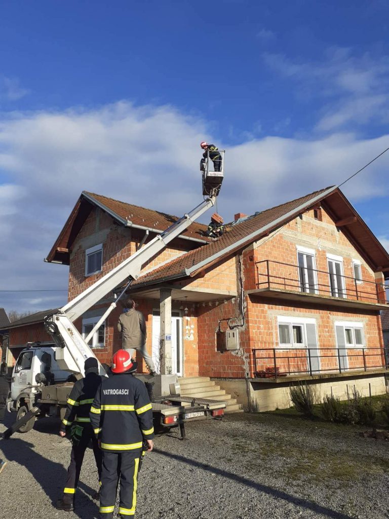 Vatrogasci Karlovačke županiji zabilježili su 11 tehničkih intervencija koje se odnose na oštećenja krovišta i dimnjaka, a na kojima je angažirano 29 vatrogasaca i 13 vatrogasnih vozila.