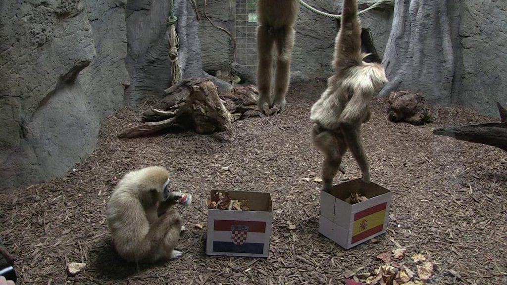 Prognoziranje pobjednika utakmice unijelo je razdor u obitelj gibona. Kent je izabrao kutiju sa španjolskom, a njegova partnerica i kćeri onu s hrvatskom zastavom.