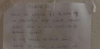Neočekivana poruka dočekala je jednu stanovnicu Španskog. Naime, nekoga je zasmetala galama koja noću dopire iz njenog stana pa joj je odlučio zaprijetiti porukom.