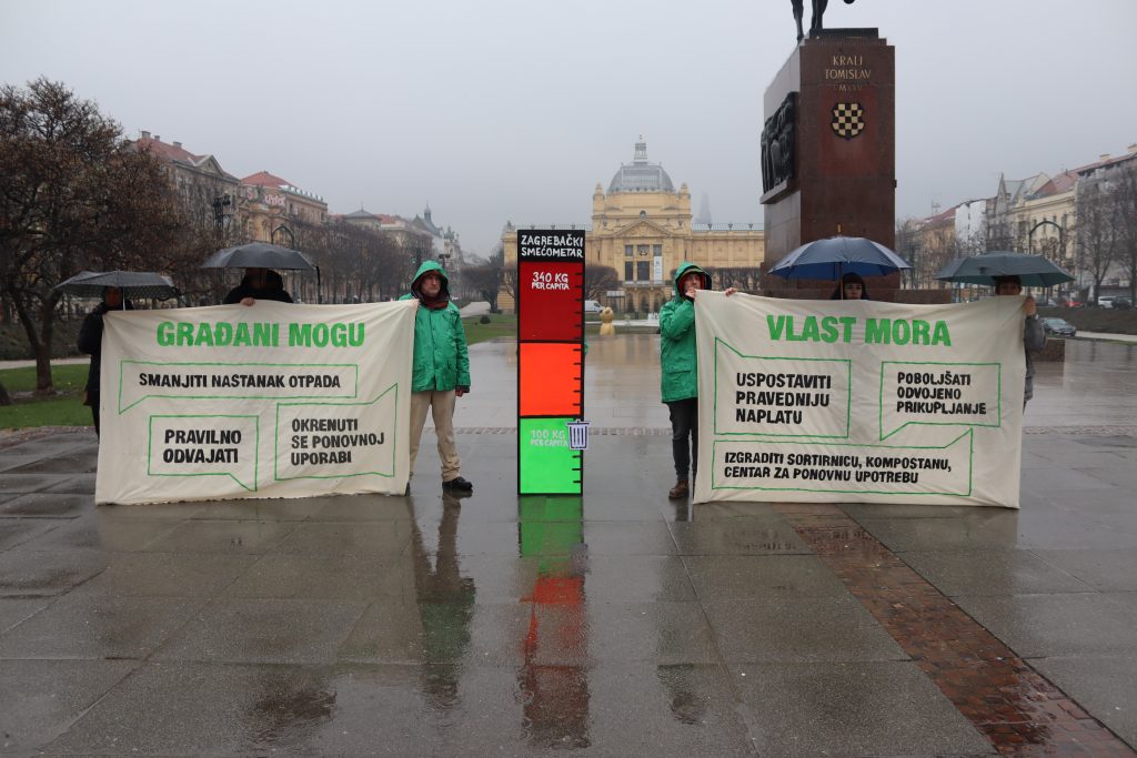 Gradske vlasti moraju osigurati sustav ponovne uporabe, kvalitetnijeg recikliranja i kompostiranja te naplate koja motivira na smanjenje otpada, a stanovnici Zagreba trebaju odgovornije kupovati i smanjiti otpad kojeg stvaraju – poruka je to aktivista i aktivistkinja Zelene akcije koji su povodom Europskog tjedna smanjenja otpada održali performans na Tomislavovu trgu u Zagrebu. Upozorili su na prekomjerne količine otpada koje se proizvode u gradu. Kreativno su prikazali mogućnosti koje ljudi imaju kako bi smanjili otpad, ali i mogućnosti gradske vlasti u Zagrebu (kao i u drugim gradovima) za smanjenje količine otpada koji nastaje i koji se baca na odlagališta.